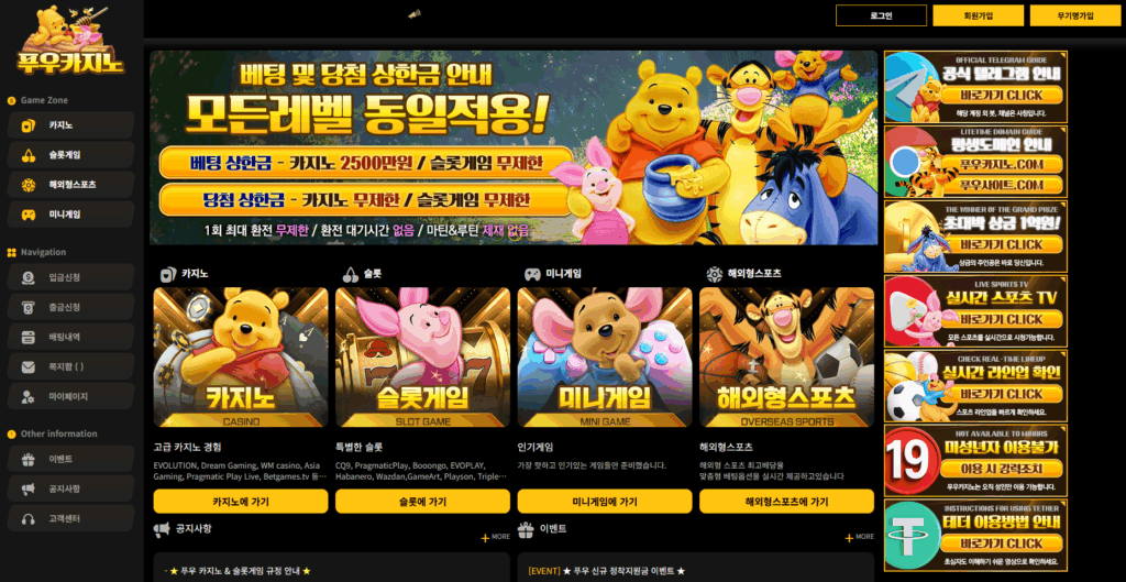 플랫폼의 편리함뿐만 아니라, 다양한 이벤트와 보너스 혜택도 푸우카지노의 또 다른 매력입니다. 신규 회원을 위한 웰컴 보너스는 물론, 매일 진행되는 적중률 이벤트와 포인트 적립 혜택, VIP 회원을 위한 특별 캐시백 프로그램까지 마련되어 있어 이용자들은 배팅 이상의 재미와 이익을 동시에 누릴 수 있습니다. 이러한 이벤트는 단순한 게임의 반복이 아닌, 지속적인 기대와 보상을 가능하게 합니다.